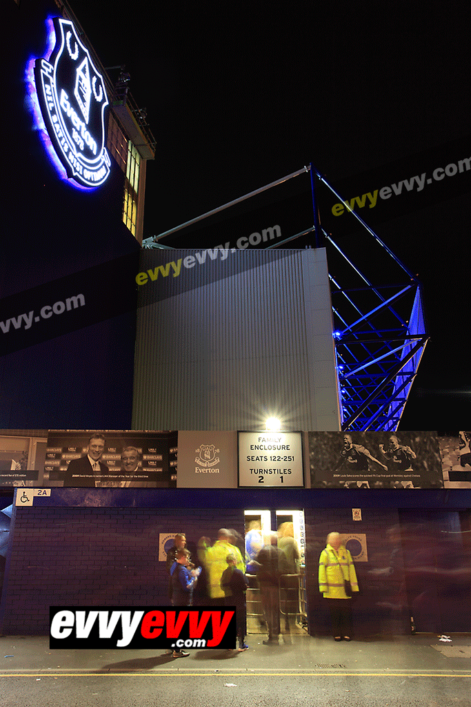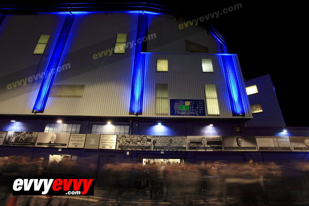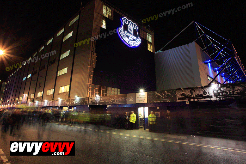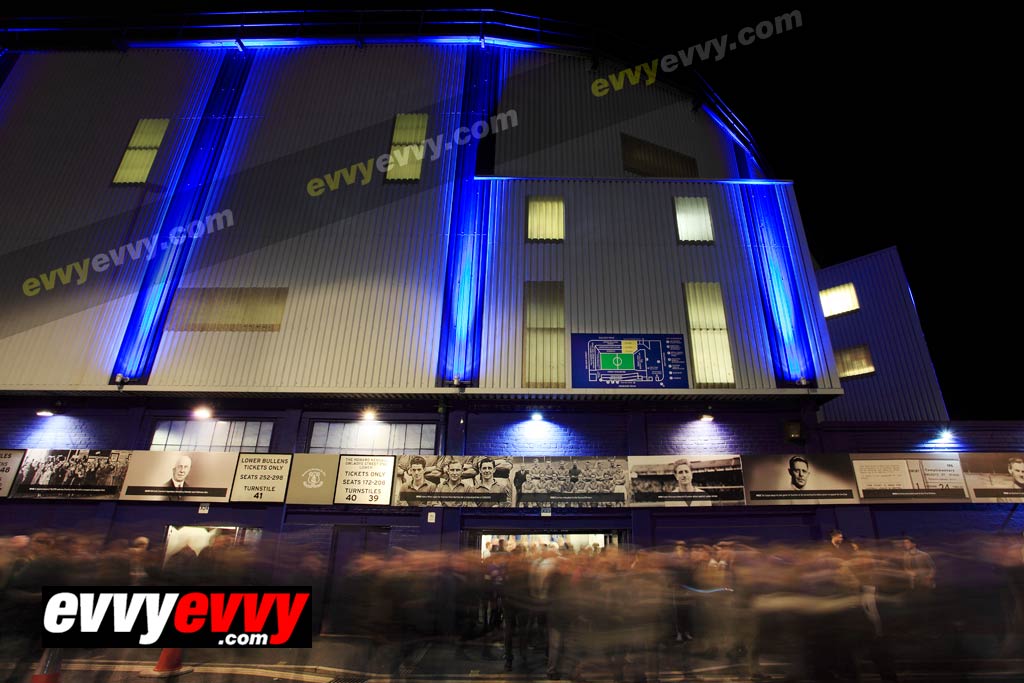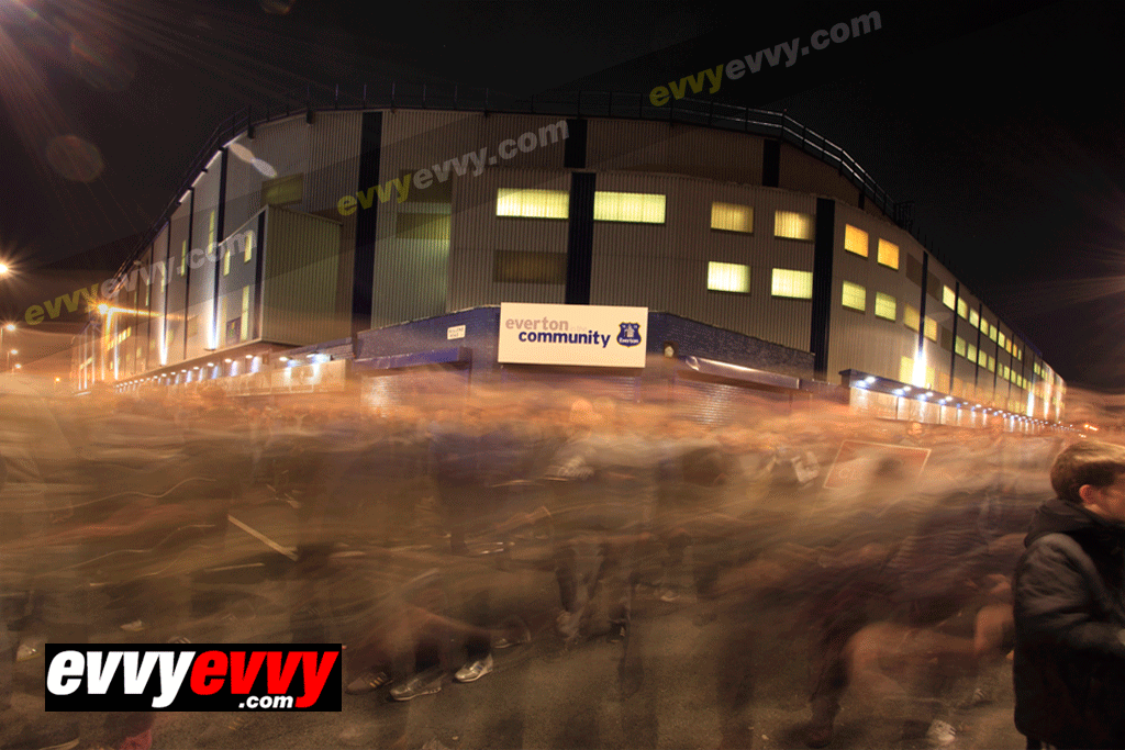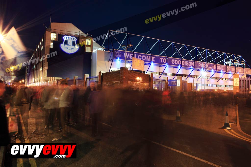 A few years ago, in a deep blue twilight, I’d set up my tripod in front of the ground. It was a night match in the Europa Cup, against a team from the Ukraine (I think) and a drunken Evertonian had been eyeing me whilst eating his kebab and chips. For some reason, he’d arrived at the conclusion that if I was taking pictures, I must be a foreign a tourist.