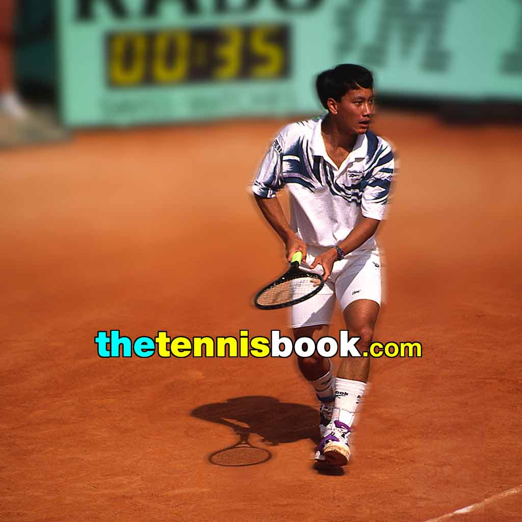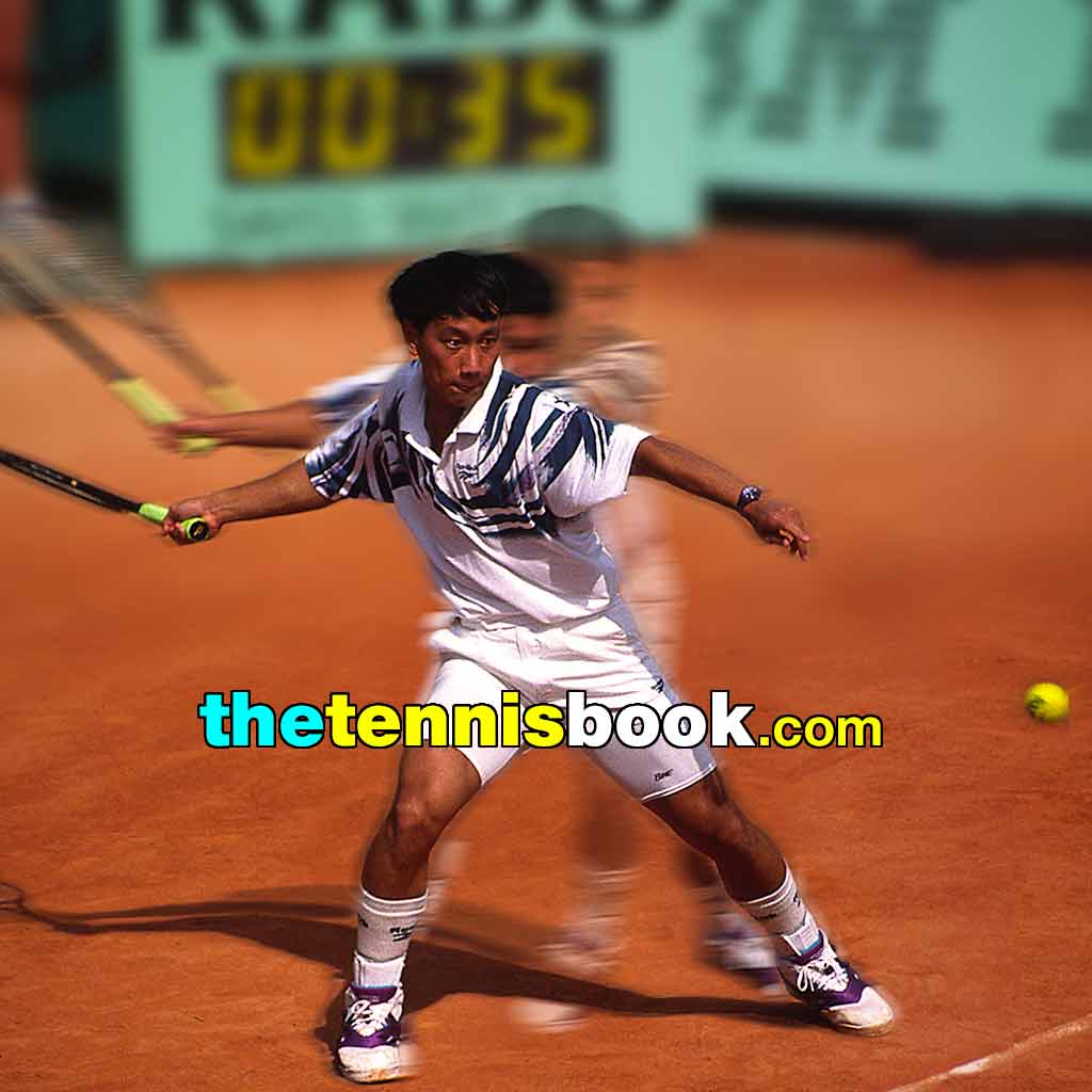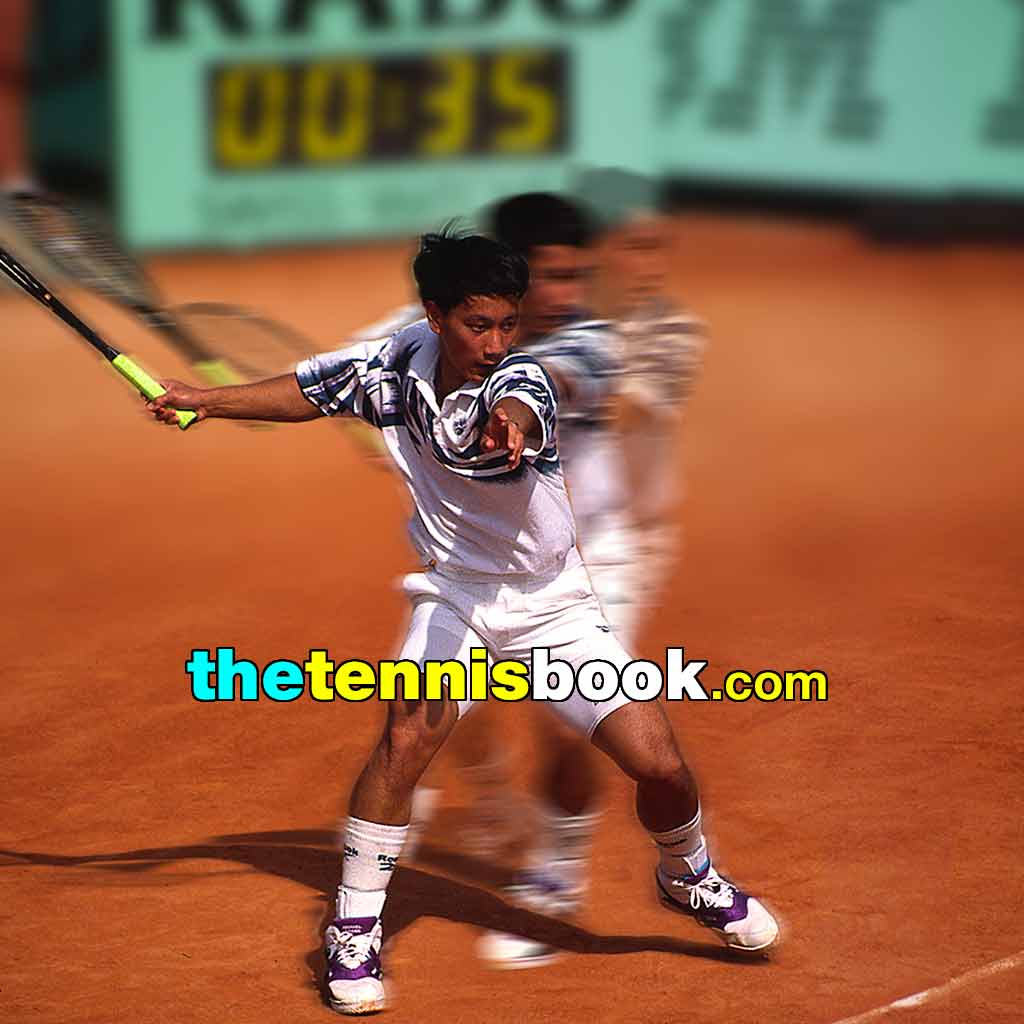 If you see the knuckle of a player’s thumb on top of the racket grip/handle, you know that the palm of their hand will be somewhere towards the bottom of the grip and here the knuckle is placed similar to Chang’s.