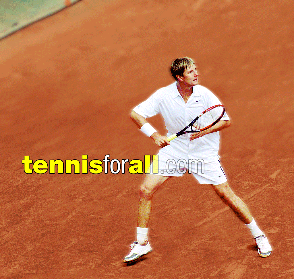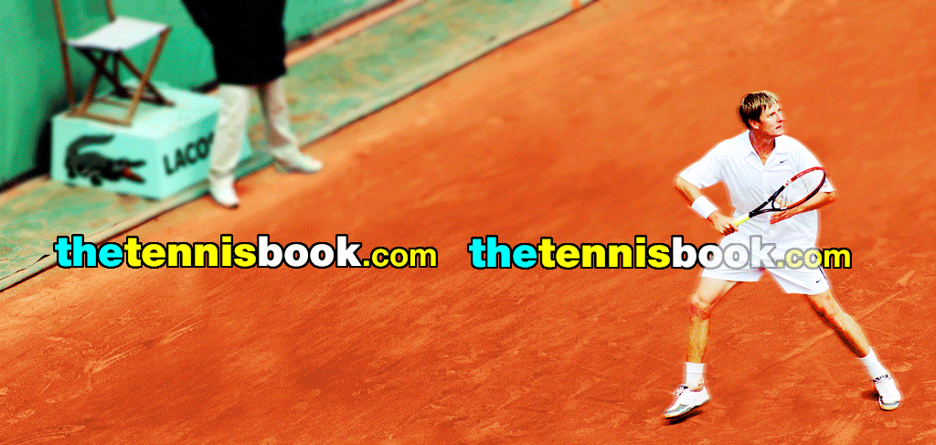 For most players, the shorter ball that Steffi dealt with previously is the easy one, and in this sequence, Yevgeny Kafelnikov deals with a more difficult deep, high-bouncing ball to his baseline.