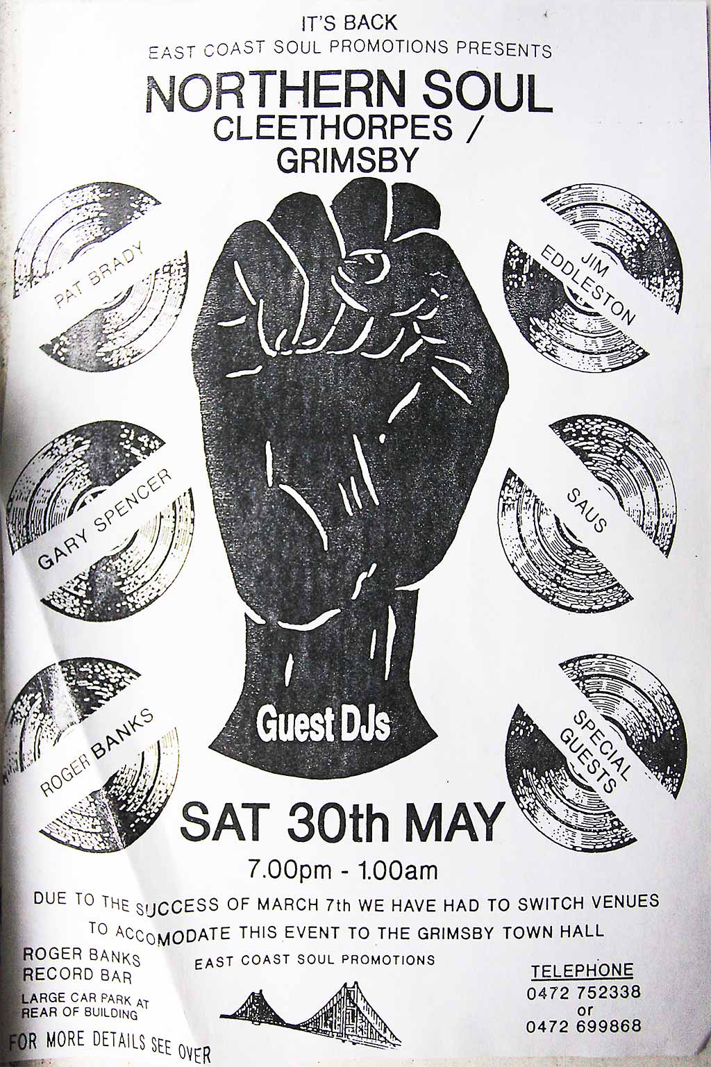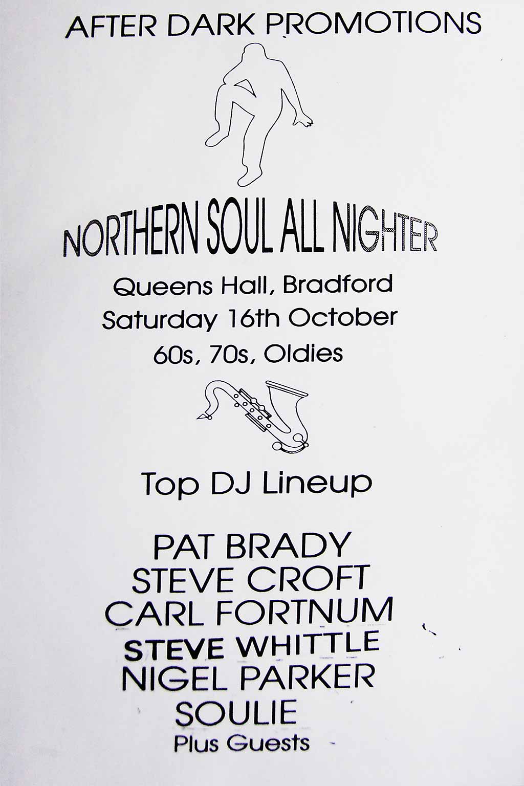 A premium regret about the Northern Soul days is that I was stupid enough to ‘lose’ all my photographic prints and negatives: like a tit, I just stuck boxes of them in the bin when having a tidy-up tizzy fit.