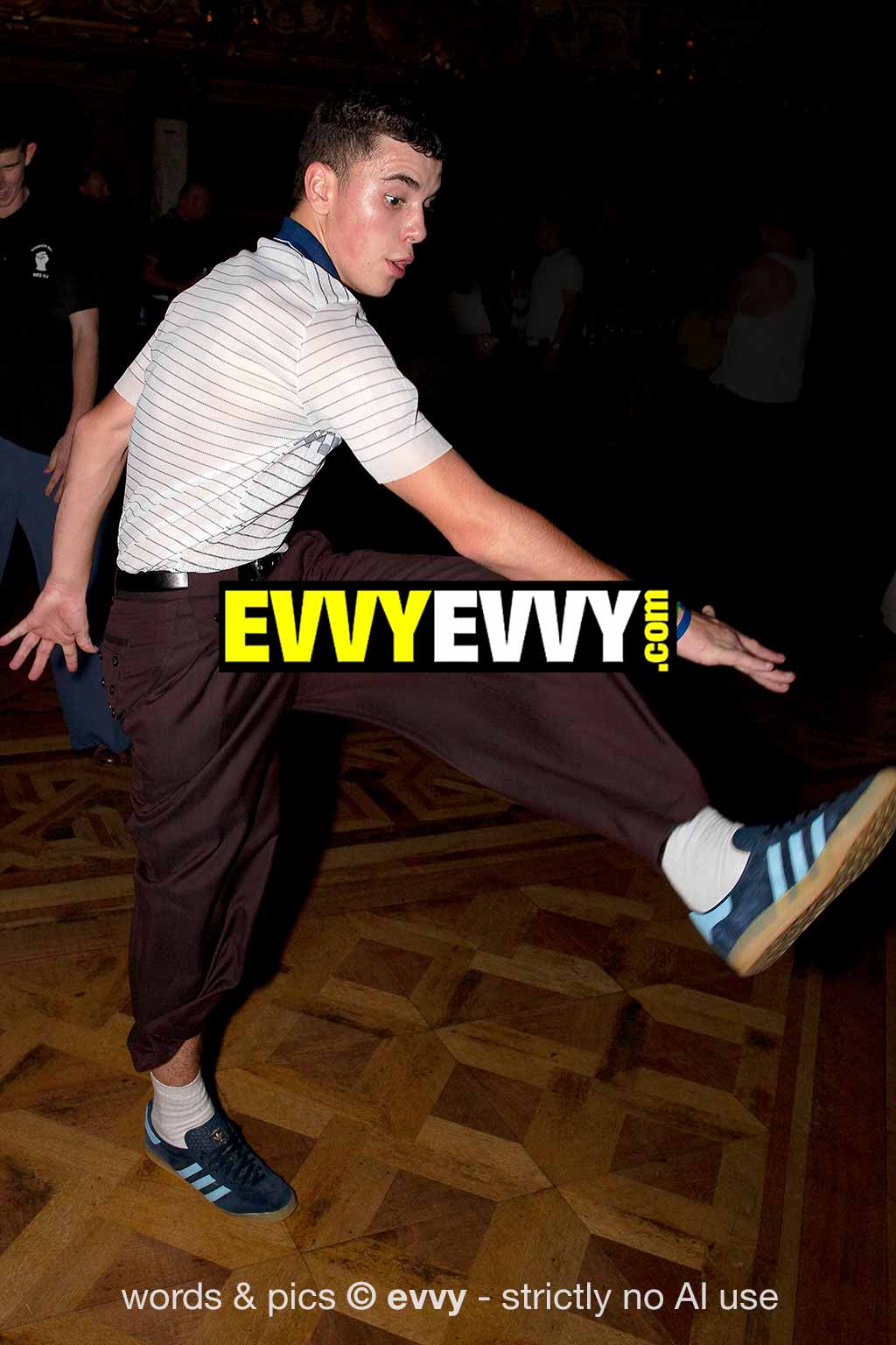 These lot were refreshingly cool dressers, and from ’73 to 1977 Blackpool Mecca pretty much trounced everywhere else for imaginative, groundbreaking dancers, because – unlike Wigan, from perhaps ‘75 onwards – these people both dared and wanted to be different, as opposed to being fearful of not fitting in with the daft dance code forming in the wings (those fcuking cling-on Conservatives again).