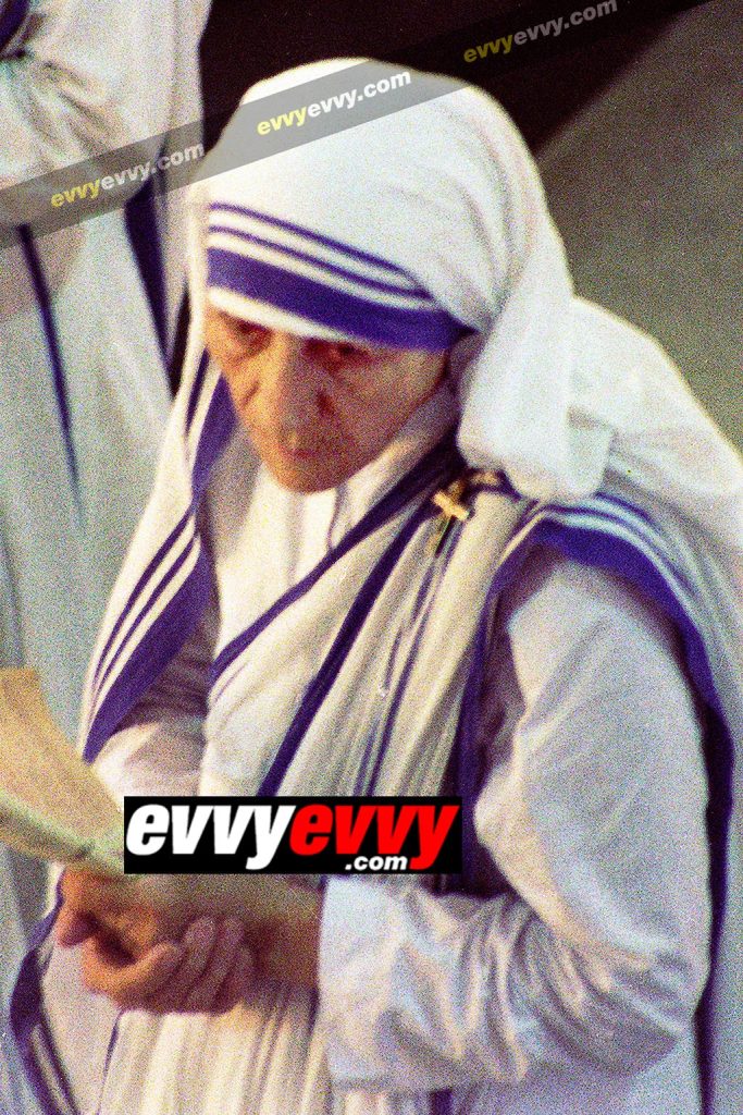 Before I could get to the top of the stairs, to put on my sandals, Mother Teresa appeared on the balcony and took hold of my hand.
